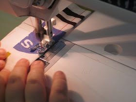 Ompelu aloitettiin niskanauhan ja solmiamisnauhojen ompelulla.
