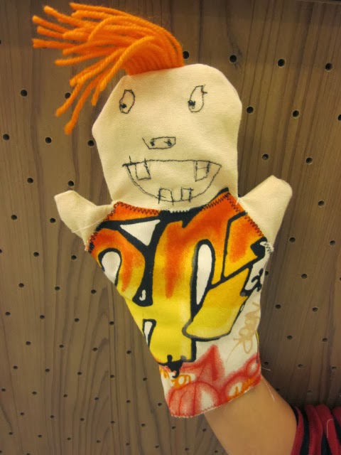 Nelosluokkalaisten käsinuket ovat olleet varmaan tämän syksyn hauskempia käsitöitätöitä koulussamme. Niin hauskoja ja mielikuvituksellisia ne kaikki ovat olleet. Oppilaat ovat myös ihmetyttäneet sillä, että ovat jaksaneet kirjoa kasvot niille käsin. Muutamille kasvojen kirjomisessa meni parikin käsityökertaa, neljä tuntia yhteensä. Joskus silti käy niin, että tulee kiire ja silloin otetaan muut keinot käyttöön. Tämän käsinuken kasvot kirjottiin ompelukoneella ja sillä se homma kävikin aika nopeasti ja lopputulos on ihan hieno, ellei suorastaan riemastuttava!