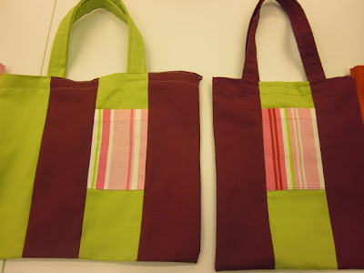 Kolmosluokkalaiset suunnittelivat pakanpäärullista kassit, joissa on kaitaleita vierekkän 3-4, sekä tasku jossakin kaitaleessa. Tässä kaikki kassit valmiina!